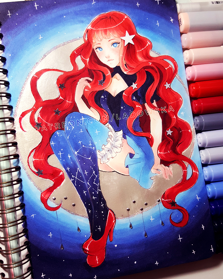 Ladowska seems to be influenced by anime, which I've picked up on from the anime style eyes.